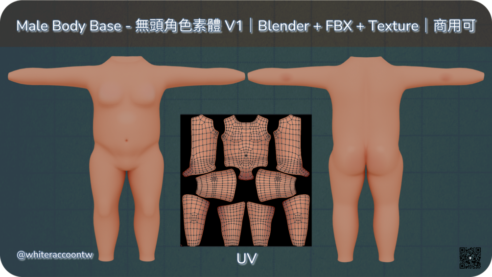 Male Body Base - 無頭角色素體 V1|Blender + FBX + Texture|商用可